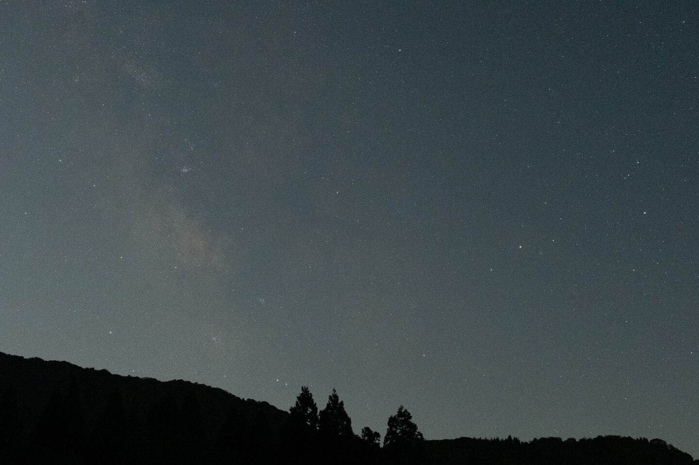 さて、このレンズで撮影した星空の画像を見てみましょう。諸事情によりZ 8で使用し、APS-Cモードで撮影しています。この焦点距離だと風景部分を大きく入れるのは難しくなり、天体写真に近い構図になります。月明かりが少しある中で撮影していますので少し青みがかっていますが、撮って出しの作例になります。赤道儀は使用していません。