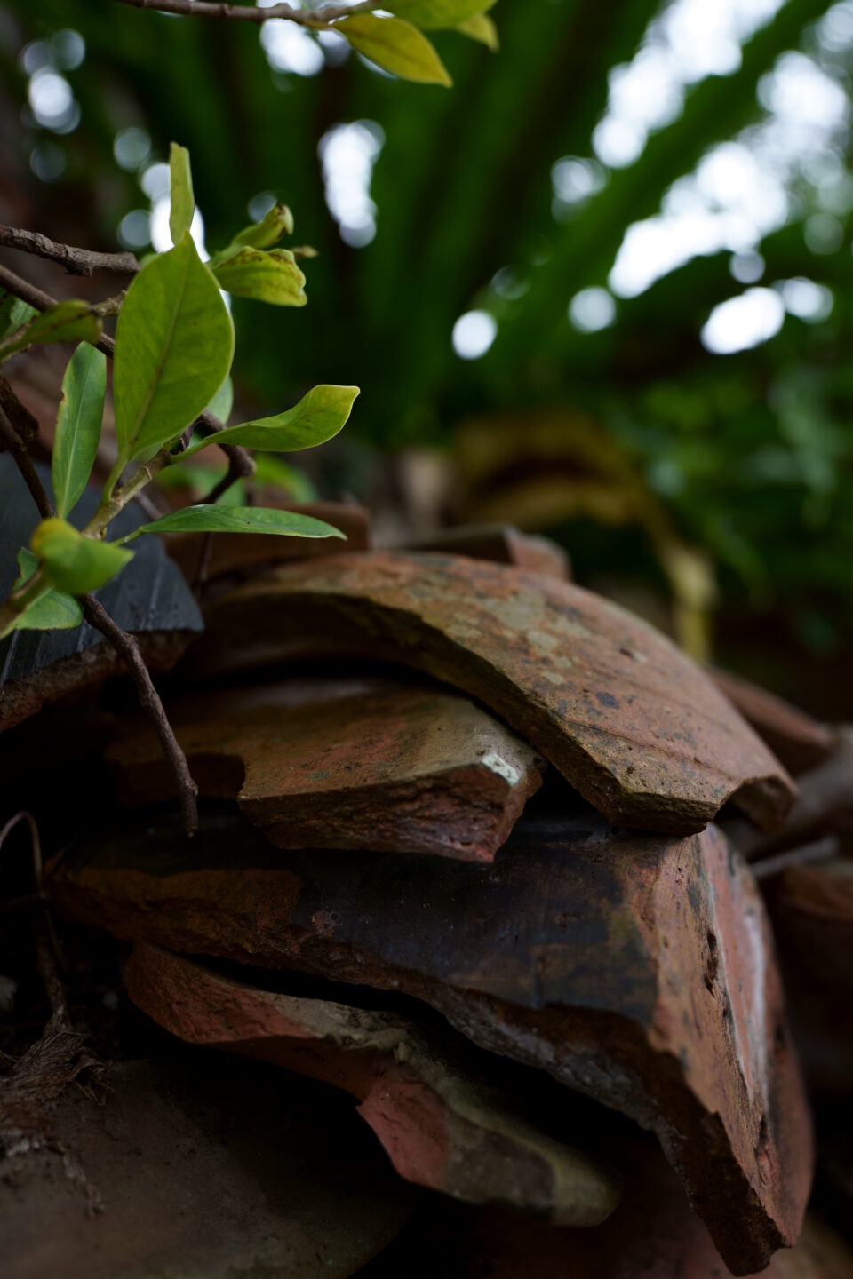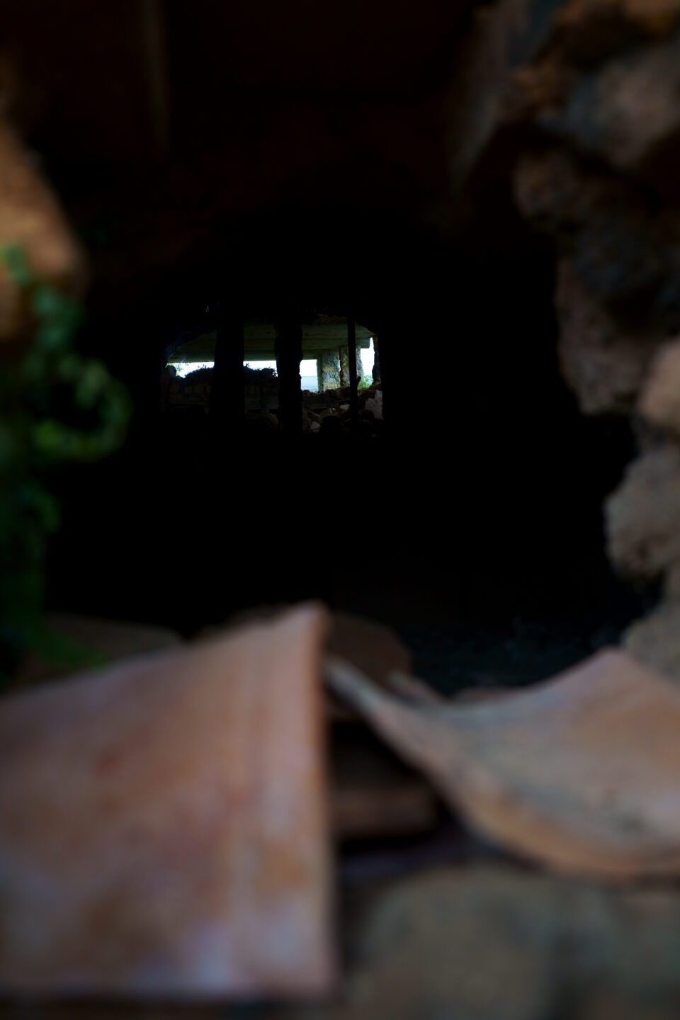 ショートムービーを撮影した「南ヌ窯 (フエヌカム)」の、陶器のかけらたちと、窯の中を覗いた画です。