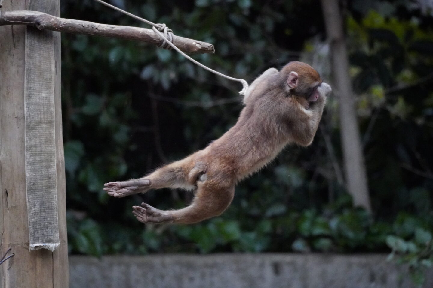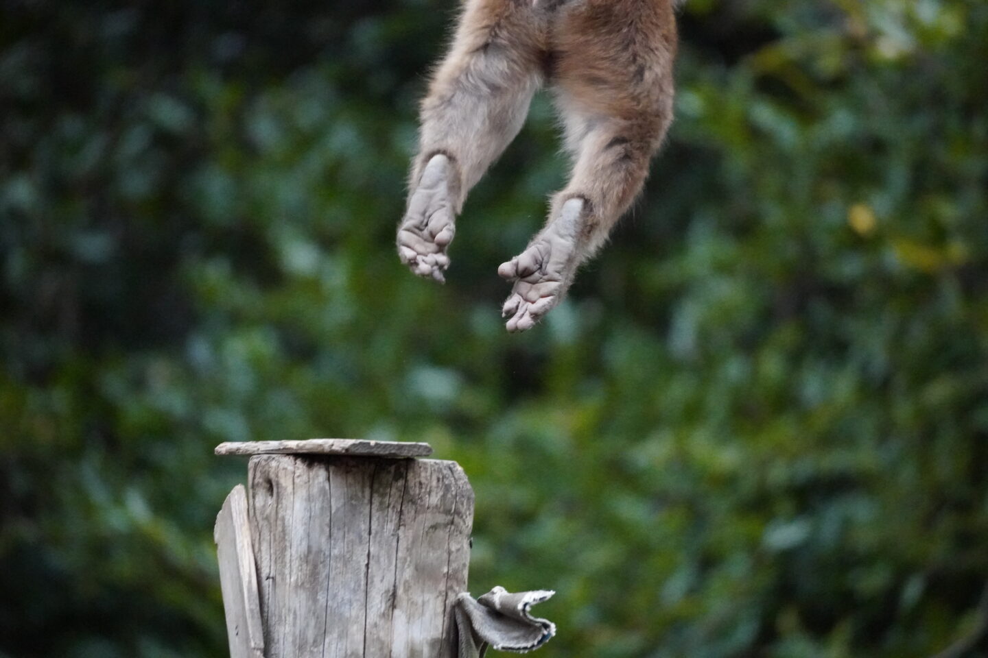 ときおり吠えながら雲梯でグルグルと派手に回転する姿を見せてくれます。ダイナミックなアクションはフォトジェニックですが、動きにフェイントが入るためなかなか納得いくタイミングを撮らせてくれません。それでもAFはしっかり追従できています。