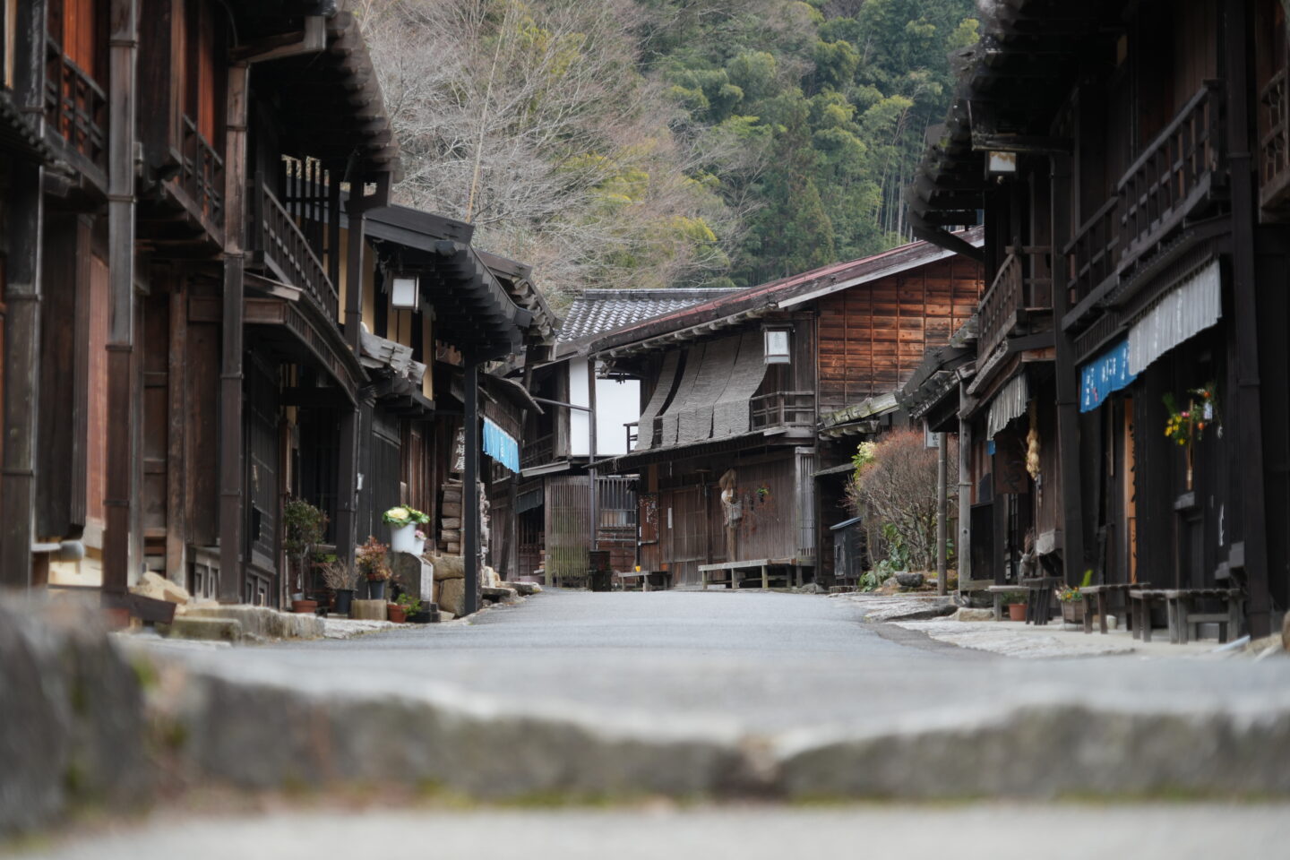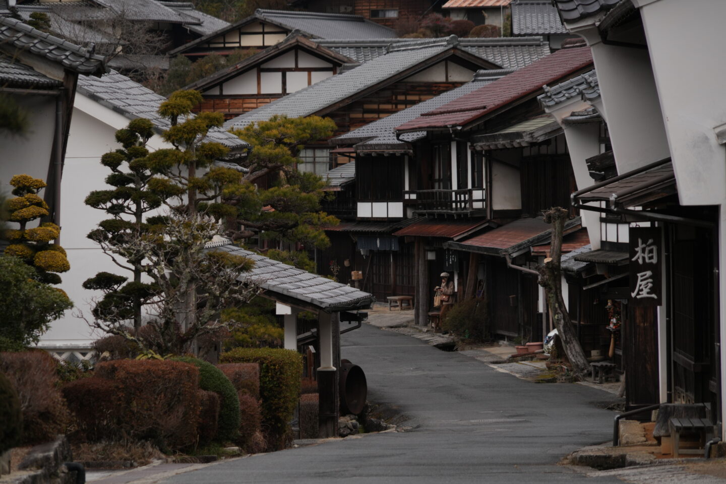 気楽に高倍率ズームレンズ一本だけ持って散策できるのは、荷物も少なくなり旅行などにはありがたいレンズです。240mmの望遠側を使えば、望遠の圧縮効果を使って、宿場町の情緒ある奥行き感を演出することができます。
