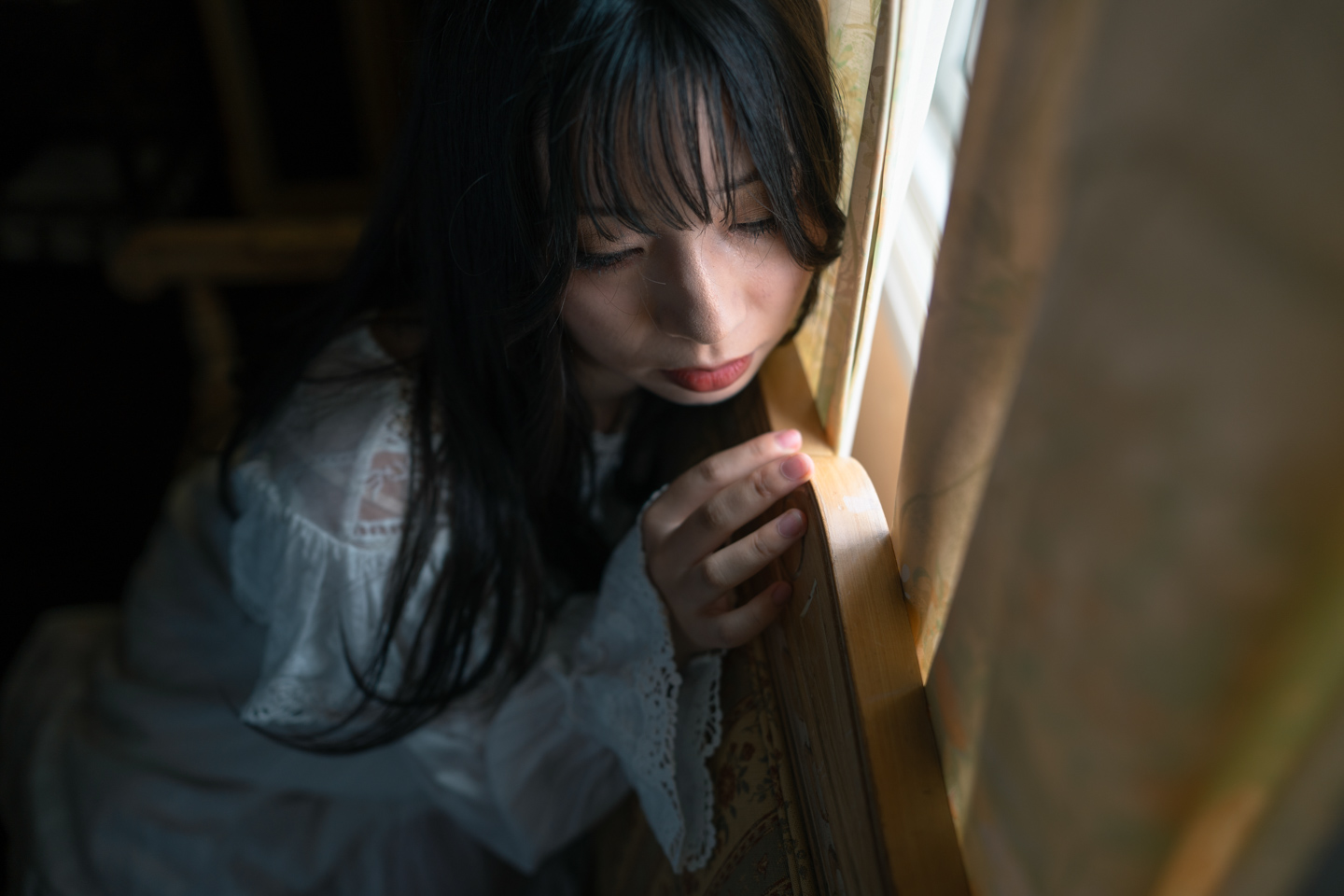 わずかな自然光のみで撮影できるのも開放値が小さいレンズだからこそ。コントラストが高くなりすぎるのにも注意が必要です。