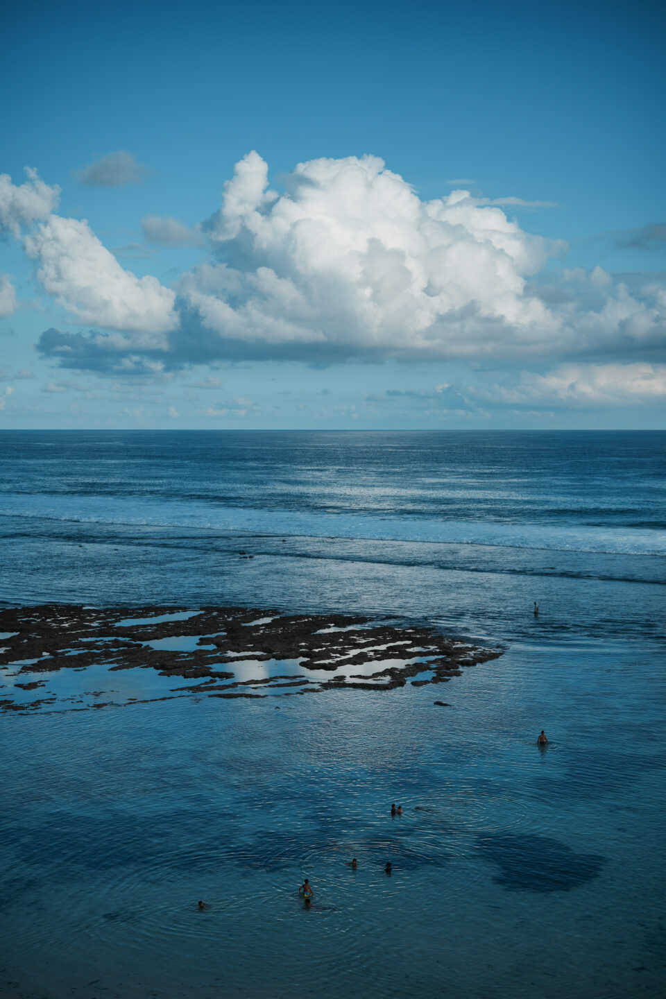 また、ビーチに行けば高台の上から透き通った水の中で遊ぶ観光客を背景処理しながら撮れるし、50mmにサッと変えて入道雲が広がる南国のビーチ全景をおさめることができる。