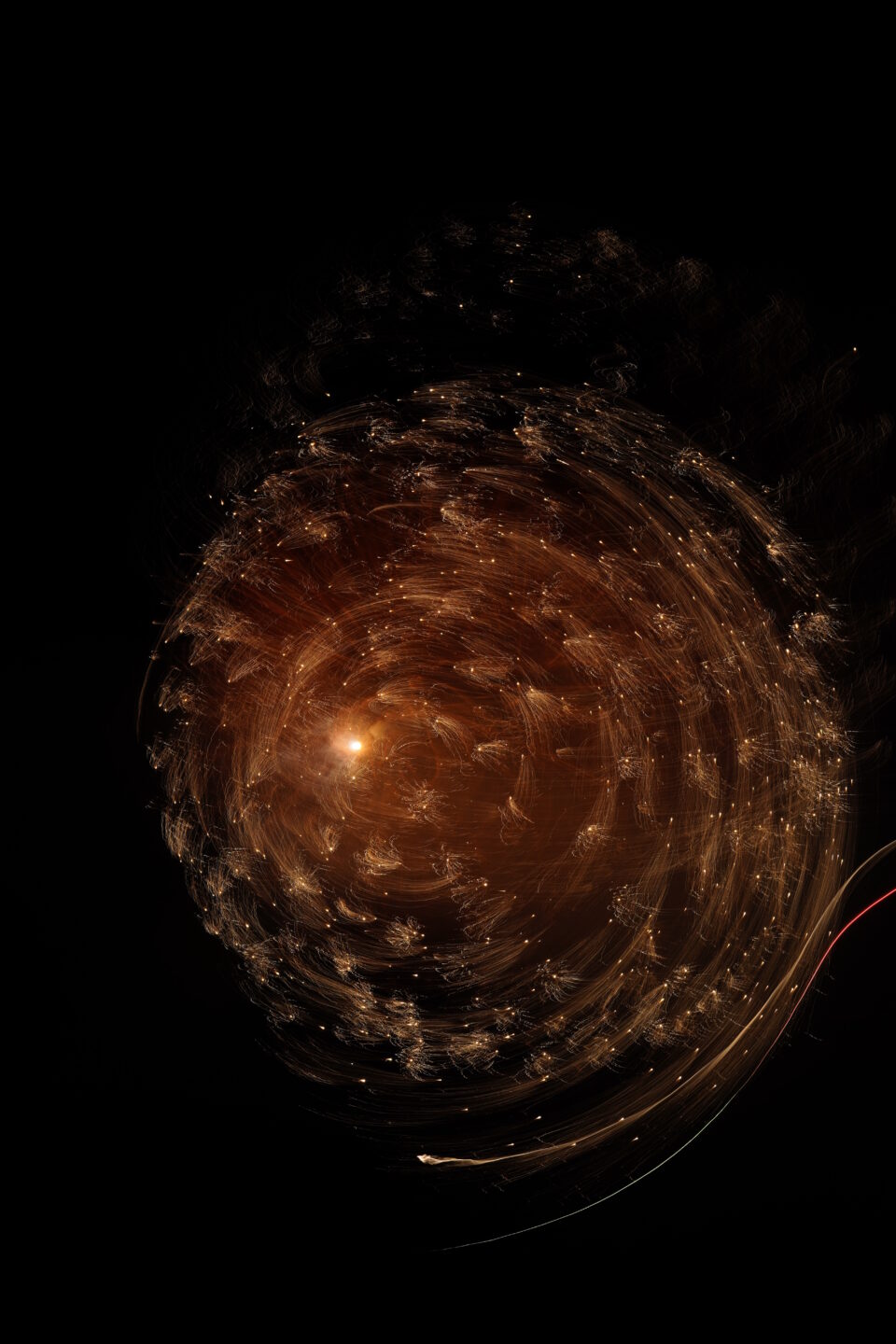 手持ちでシャッター速度は2~5秒くらいにし、標準ズームレンズで花火にピントを合わせながら露光中にズームリングを回します。