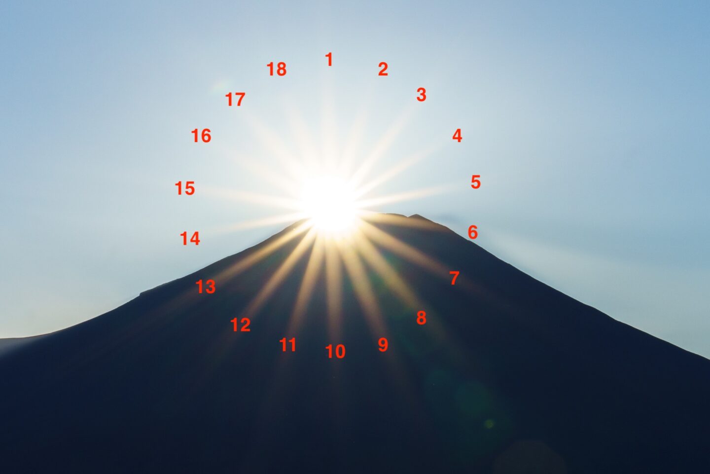 SNSなどで公開されているダイヤモンド富士の写真を見ると光条が6本、8本、14本、18本など様々なことに気付かれると思います。
