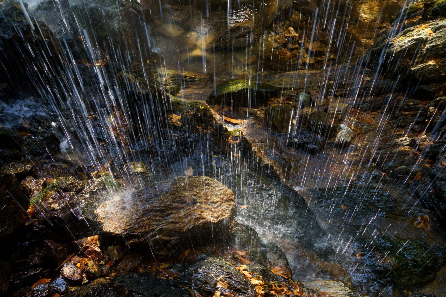 例えば大雨の後など水量が多い状況では、低速にしすぎると水流の模様が出ず真っ白になってしまい、場合によっては白飛びを起こしてしまいますし、逆に水量が少ない時にシャッタースピードが速すぎると水流のボリューム感が描けなくなってしまいます。水流撮影に慣れていない方は、複数枚撮影をしてみて自分の好みに合うシャッタースピードのものを選ぶようにすればよいでしょう。もちろん正解はひとつではありません。どちらも気に入れば両方アリです。後述しますが、明るい所で低速シャッター撮影するためにはNDフィルターが必要になります。