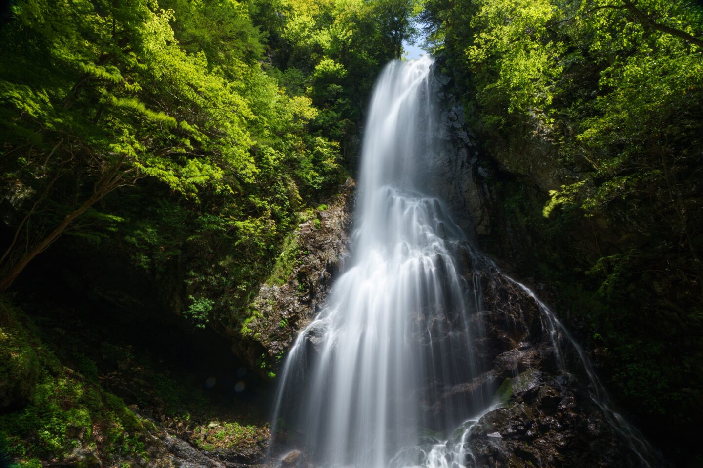 滝や水の流れを柔らかく描くためには、低速シャッターを切ることが必要です。私の場合、撮影する際の目安として概ね1/8秒よりも低速側に設定することを心がけています。とは言っても実際に何秒を切れば良いかの判断は難しいですよね。どれくらいのシャッタースピードに設定するかは、その時の水量にもよります。