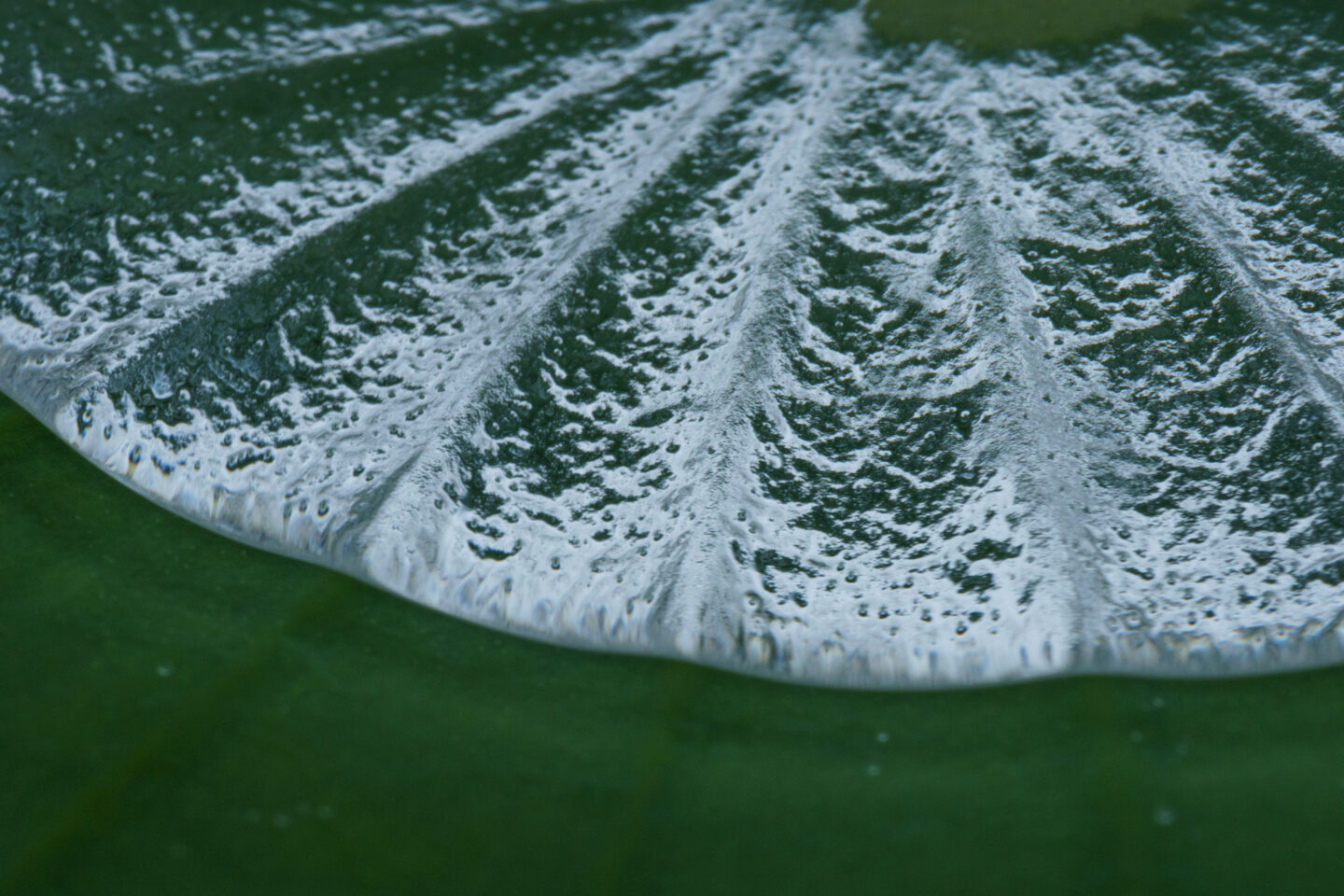 水をはじくハスの葉の上は、雨上がりに面白い模様や美しい水滴が見られるのでおすすめです。