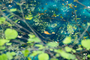 水流を描くにはシャッタースピードが重要。水量に合わせてシャッタースピードを調整しましょう。