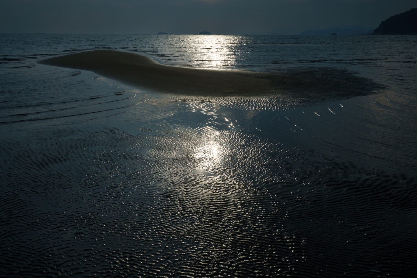 干潟の撮影では潮位がポイントになります。海は潮の満ち引きを繰り返しています。満潮時だと干潟の模様がほとんど見えない事も多く、干潮の時間に合わせて撮影することが必要です。こちらに関してはそこで待つのではなくあらかじめ撮影したい時間と潮位の合う時間帯を狙う必要があります。