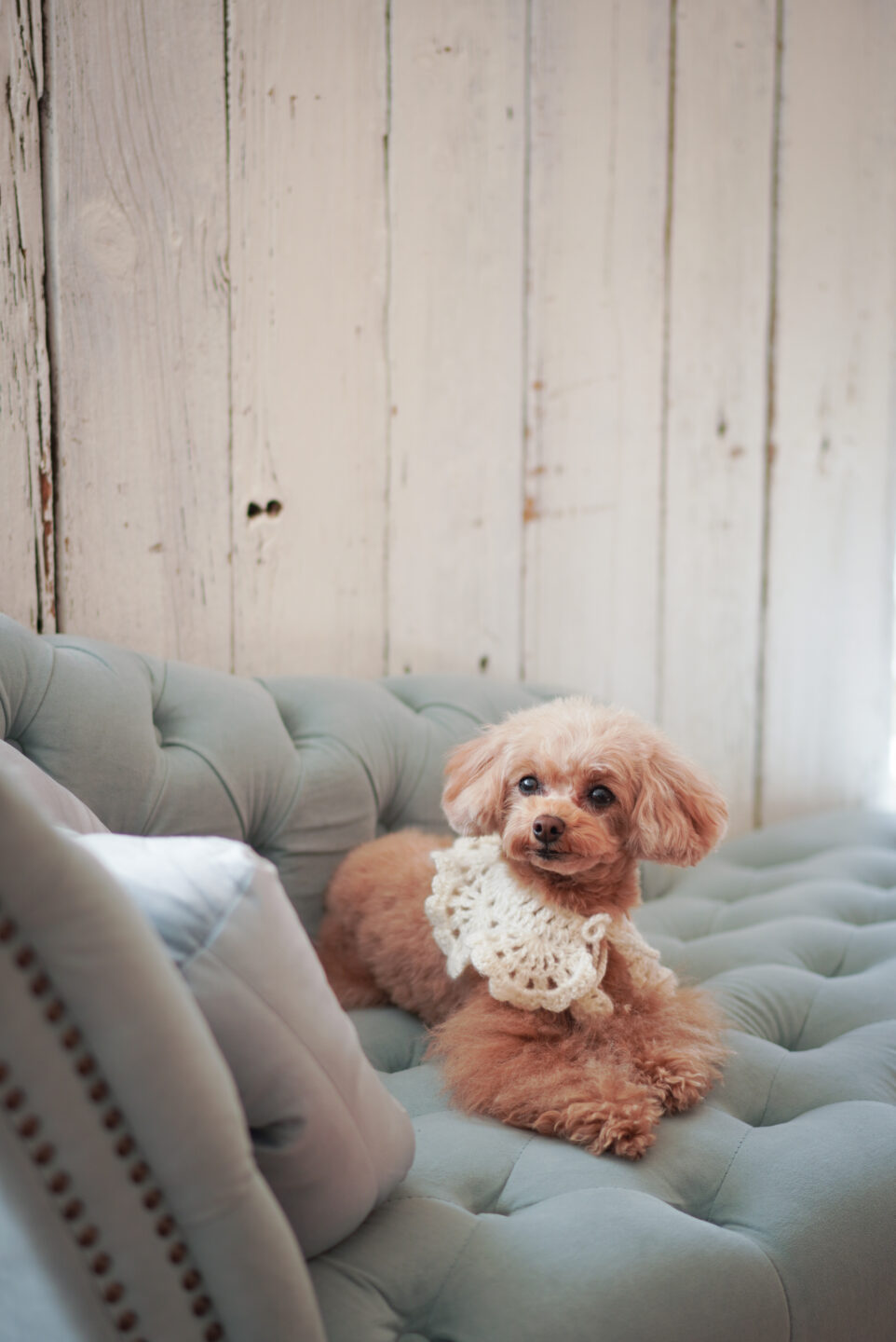 柔らかい光が差し込む中、ソファーでくつろぐところを撮影。