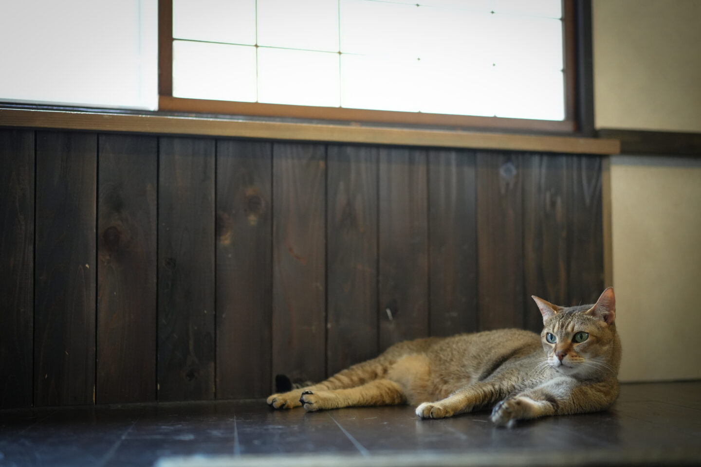 和のテイストが人気の猫カフェ「きゃりこ武蔵野店」さんで撮影。レトロ感が漂う店内はしっとりと落ち着きがあって少し暗めではありますが、そんな中でもしっかり被写体を捉えてくれました。また適度なボケ感と描写力でその場の空気感をしっかり伝えてくれる1枚に仕上がりました。