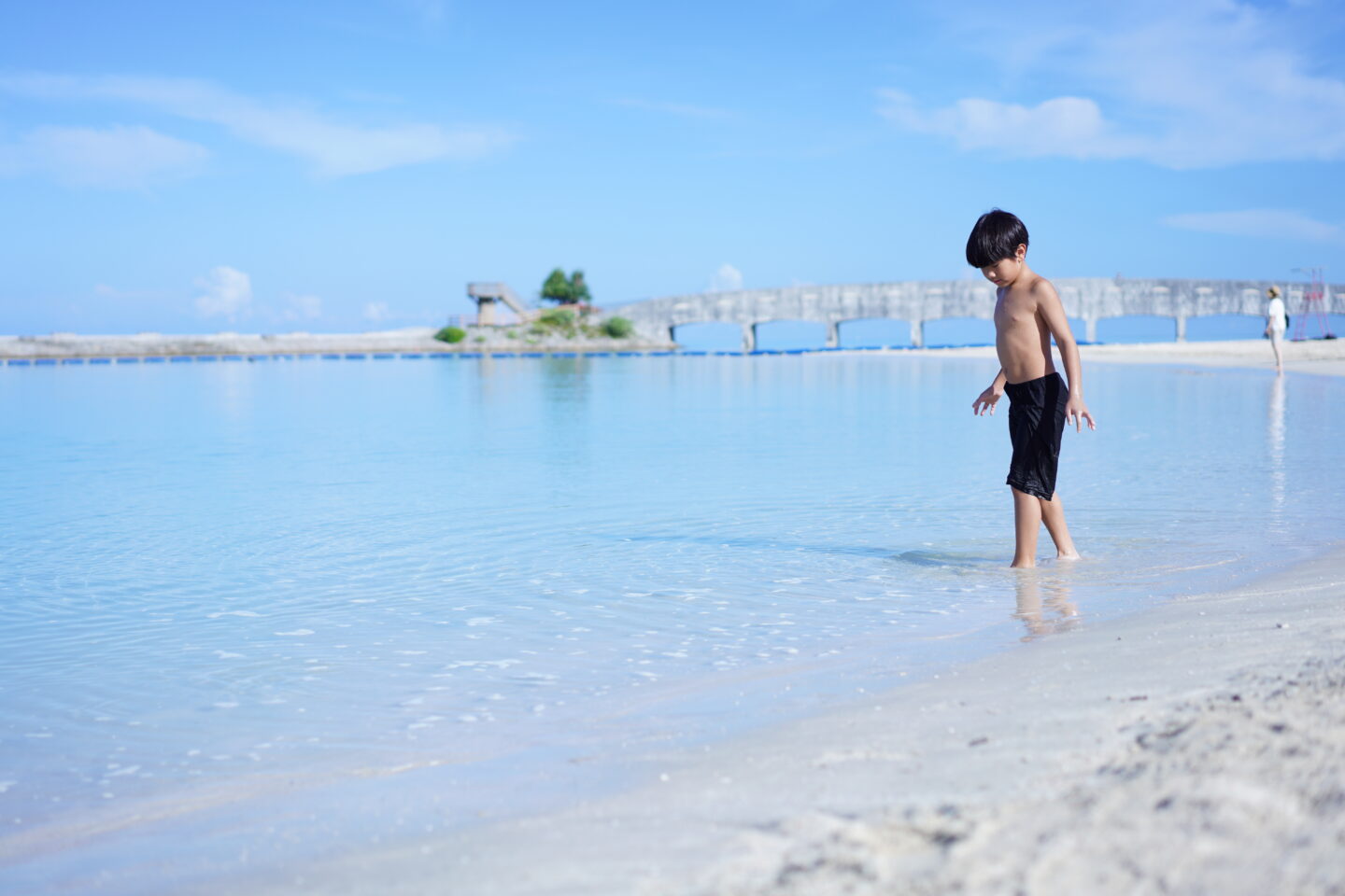 家族で沖縄旅行の1コマ。撮って出しですが、海と空のブルーが美しく表現出来ています。