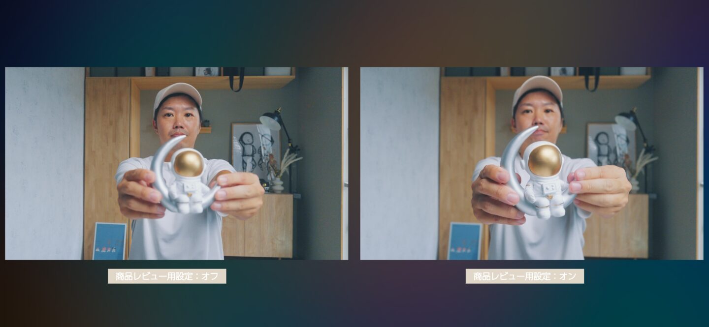 商品レビュー用設定は物を前に出したときにフォーカスを合わせてくれる機能。