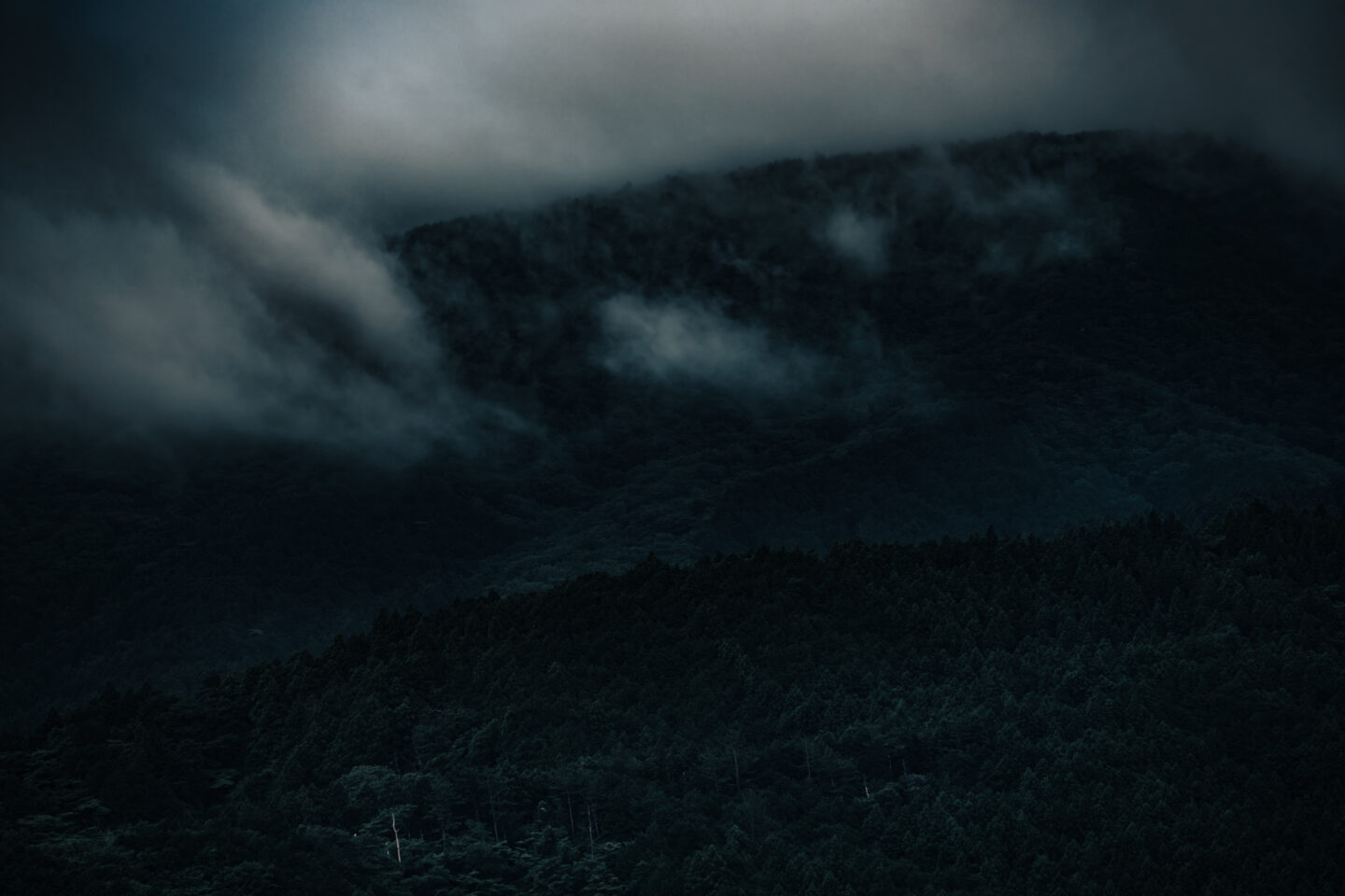 300mmで富士山の頂をアップで撮影。水墨画のような一枚に。