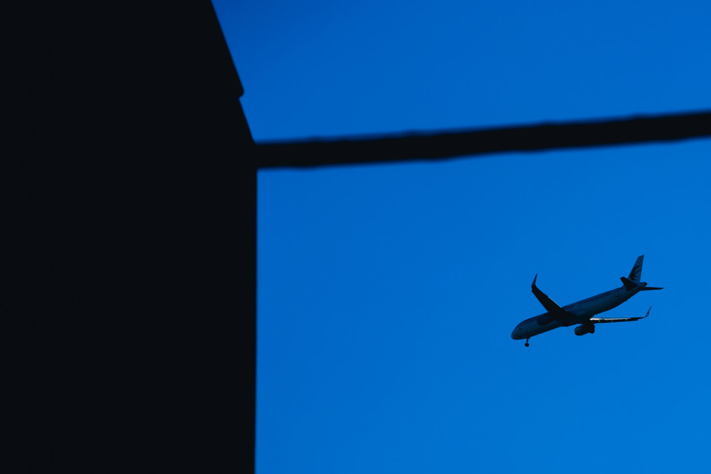 街中を歩いている時に飛行機を見つけたので急いでレンズを向けた。望遠の単焦点は使い慣れていないと被写体を捉える事が難しいが、50mmスタートのズームレンズだと50mmで被写体を探してそのまま300mmまでズームして撮影という事が可能だ。