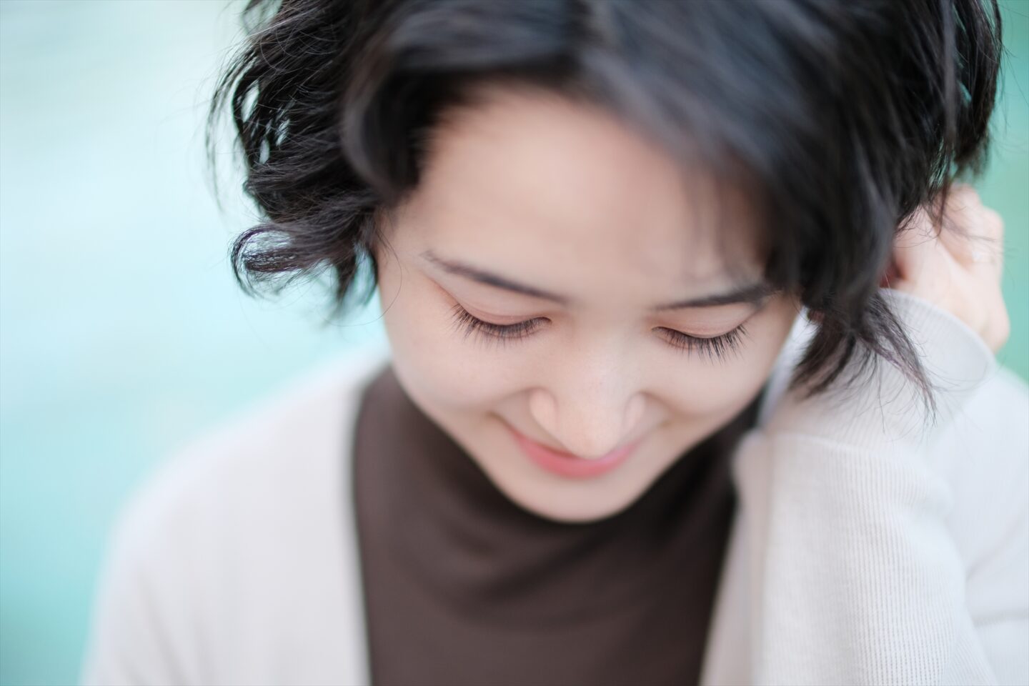 また、被写体までの距離が近ければ近いほど被写界深度が浅くなる利点を生かした、最短撮影35cmという距離で、まつ毛の先にピントを置けば、おでこや鼻筋からすでにボケはじめ、顔の輪郭さえにじむほど。背景となった噴水の水面はトーンのつながりが美しく、滑らかに描写されました。