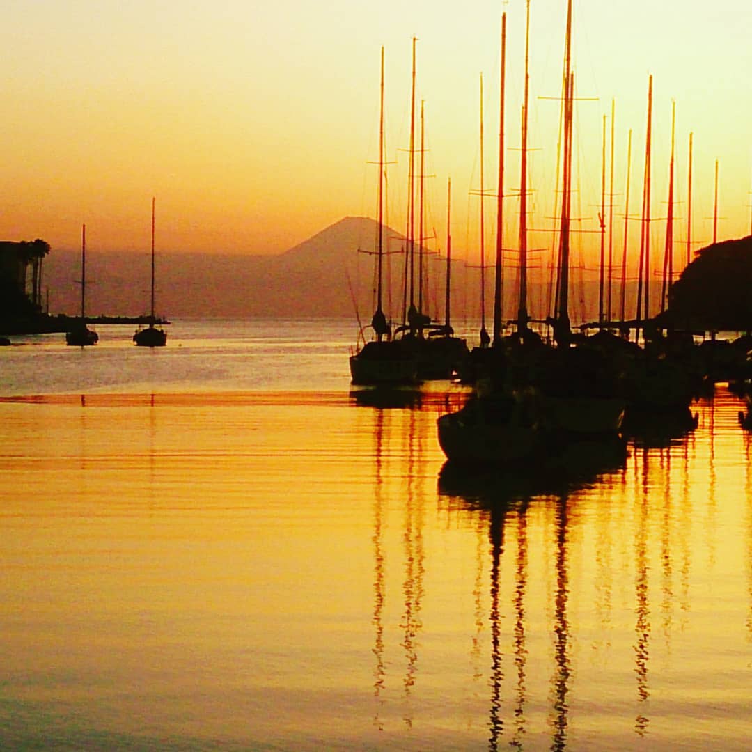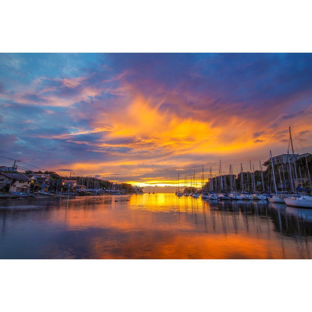 ヨット越しに見る富士山は格別ですね!夕焼け色に染まった海も、またさらに美しい。三浦半島の西側でしか見られない景色です。