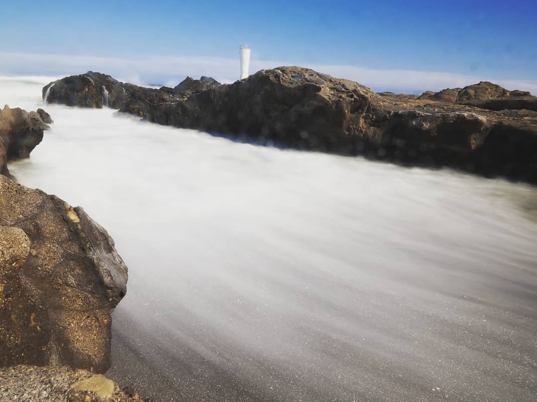 海の流れをスローシャッターで安房埼灯台を含めた岩場が天空に浮かぶよう幻想的に表現し、撮り手の狙いと時がうまくマッチして、いい作品だと思いました。
