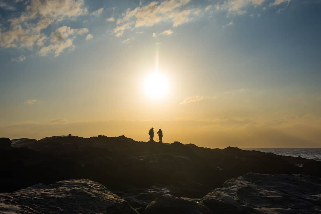 夕日と城ヶ島で見られる荒々しい岩礁という自然を人が大きすぎず小さすぎず、あえて雄雄しさがわかるという写真に仕上がっていて、引きつけられました。