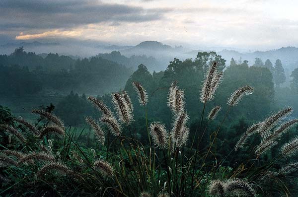 前景の朝露に標準を合わせ、これをきちんと撮ることで、朝の空気感を捉えようとした発想が素晴らしい。