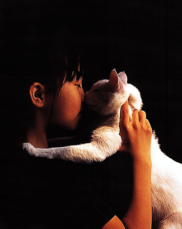 暗くシンプルなバックに、女の子の頬や白い猫を浮き立たせた、ライティングが絶妙な作品です。