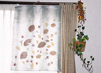 紅葉した落ち葉を集めて、押し葉にして和紙に貼りつけ、