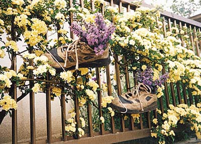 黄色いバラの絨毯に「十二単」の靴で歩いてみました。