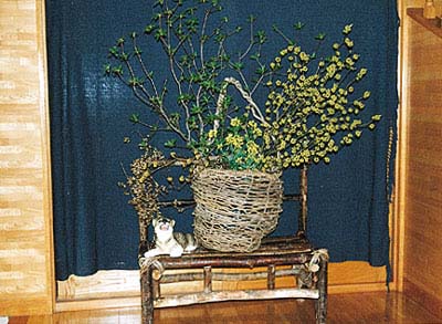 趣味のカズラに山の花と菜の花を生けてみました。