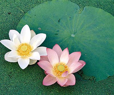 まるでデート中の恋人同士のような、紅白のハスが目に入ってきました。
