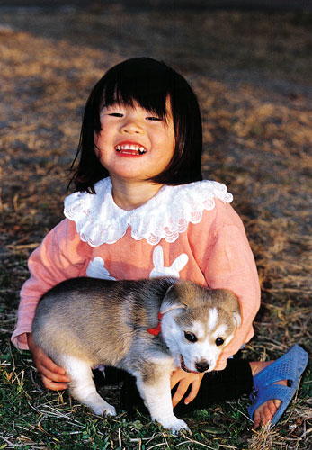 子犬の持っている目の輝きが素晴らしい。惜しむらくは夕暮れて一抹の寂しさが感じられてしまうこと。