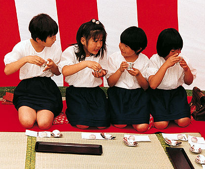 シンプルにまとめられた色彩が、子供たち一人一人の表情の違いを強調し、面 白い作品に仕上げています。