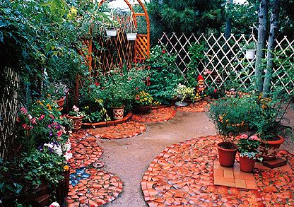 割れた鉢を うまく利用し敷きつめて形 にしました。
