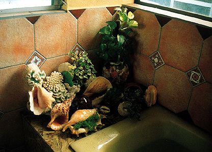 浴室のデッド スペースに海辺をイメージ して貝とグリーンでディスプ レイをしてみました。