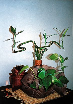 なかなか個性のある面白い組み合わ せの作品ですね。部屋の床の間などに飾ると それなりの威厳のある作品にみえてきます。