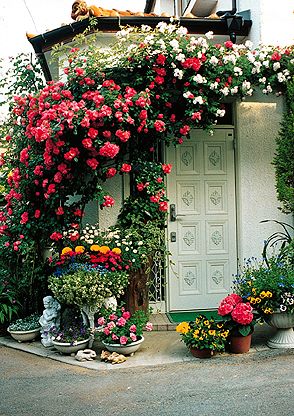 玄関の狭いスペースを工夫して可愛らし く飾っています。右側がややバランス的に軽い 感じもしますが、配色は美しくまとまっています。
