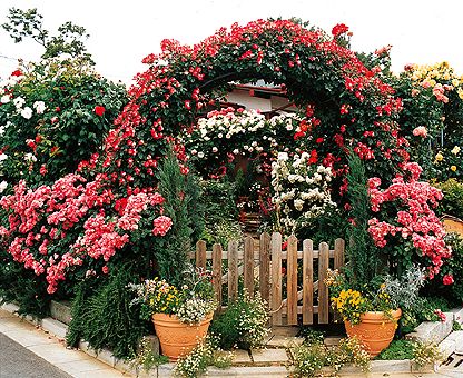 正にガーデニングの 基本である、自らも楽しみ、 また他人の目をも楽しませ、 地域住民にも大いに影響を 及ぼすような玄関ですね。 ツルバラをメインにした庭 ですが、美しい花の開花に よって他の季節の管理の 苦労がすべて報われる瞬間 です。