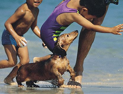 人間の顔をカットして、体の動きとずぶ濡れのダックスフンドをローアン