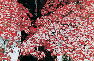 雪と紅葉の描き出す美しい模様を、的確なフレーミングで、その美しい部分だけを強調することに成功しています。