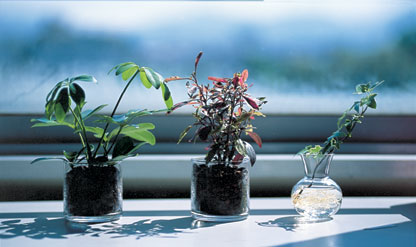 ハイドロカルチャーは環境を整え、水管理を上手にしてあげれば、この様に気軽に緑が楽しめ、飾るスペースをとりません。たちどころに殺風景なオフィスに緑のオアシスの誕生です。