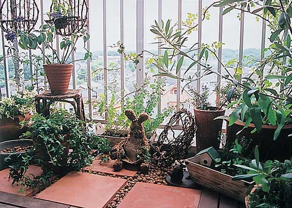 ベランダは外の部屋という感覚で、このようにガーデニングにストーリー性を持たせ、物語を構成し、その中に自分の思いを込めて飾り付けると癒しの空間ができあがります。