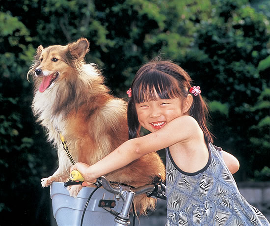 なにげない生活の中の1シーンをとらえ、その中に違和感なくワンちゃんがいます。女の子の笑顔が最高の表情を見せている優れた作品です。