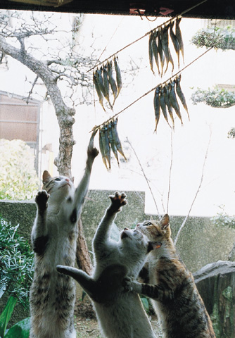 ペットとしての心やすらぐ可愛いしぐさとは異った、猫が本来持っているイキイキとした野生の表情が、ユニークなポーズとともに表現された作品です。