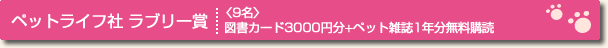 | 「第9回ペット・動物ふれあい写真コンテスト」に、たくさんのご応募をいただきありがとうございました。約5,600点の応募総数の中から見事に入賞された方々を、ここに発表させていただきます。 |
