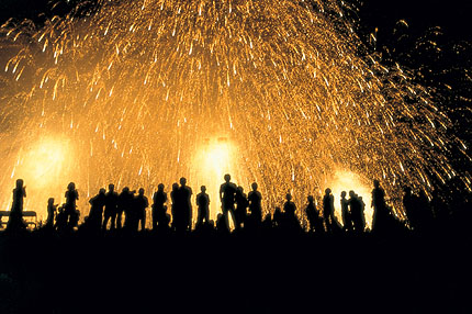 花火の作品は多く、各種の写真コンテストでもよく見かけるが、花火が画面いっぱいに散ったボリューム感には圧倒される。さらに、花火と人物の兼ね合いがみごと。堤防の上から花火を見上げる人々のシルエットが重なり合うことなく、一人ひとりの動きがよくわかり、これが花火の量感を引き出す結果になっている。たまたま撮れたものではなく、よく計算された作品。