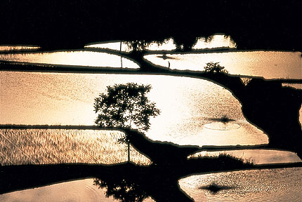 新潟県中越地震で日本を代表する米産地・越後の伝統的な棚田や、ニシキゴイの産地が打撃を受け、崩れてしまったかもしれない。そういう思いを持って見ると、とても貴重な風景に見え、なにげなく見ている日本の自然の美しい景色も決して永久的なものではないのだと感じさせる。こうした考えから、今回、特別賞を選ばせてもらった。水面の反射と木立、あぜ道をシルエットで描き色調を単純化させたことで、逆に思いが深く伝わってくる。