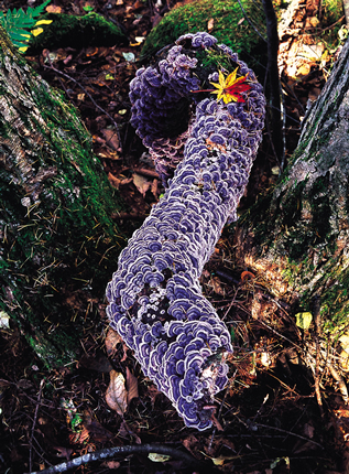 老木についたきのこだと思いますが、その形が不思議な生き物のようになっています。きのこと周りのコケの色合いが対照的で、非常に存在感のある作品になっています。きのこの質感と形状、そしてモミジの葉がうまくマッチして、不思議な空間が生まれました。自然の美、自然の造形の妙技がつくりだした自然界の神様の姿に思えます。小さな空間ですが、小さいが故に大きな広がりを感じさせる、的確なフレーミングとイマジネーション豊かな映像で表現したところが見事です。