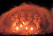 「夕闇の雪ダルマ」
