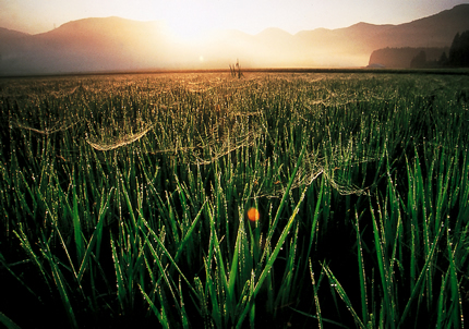 うっかりすると見過ごしてしまいそうな情景を作品にしている。創造力と構成力によって、目の前の情景をどのように撮影すると作者が受けた感動を皆に伝える作品が生まれるかといった発想が撮影者にある。逆光の朝陽に露を含んだくもの巣がきらきら光り、太陽の光と手前からあてたストロボの明るさのバランスもいい。撮影者のこれまでの経験がこの作品を生んだのだと思う。(田沼)