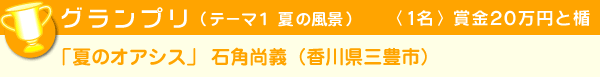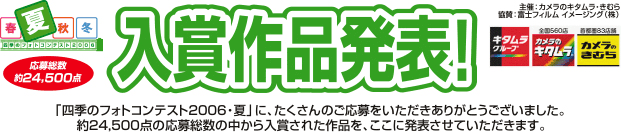 | デジタルカメラの応募が増えてきていますが、色調整が撮影後にできるのでそれに夢中になってしまう人もいます。色のインパクトを出そうとしてかえって悪くなってしまう場合が多くあります。それよりも大事なことはきれいな色を探して撮ること。そうすればちゃんときれいな色の写真になります。銀塩もデジタルも基本は同じことなのです。 |