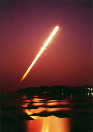 頭の中である程度の月の光跡を計算し、長時間露光で目には見えないものを写しこんでいる。海に反射した月の光や夕焼けの空の色など故郷への思い入れが全部、画面上に出ている。1回でこういう作品は生まれてこないだろう。何度もイメージを構成して、出来上がってきたものだと思う。(田沼)
